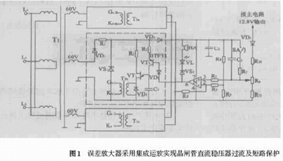 盡管功率場效應VDMOS 和絕緣柵雙極型晶體管IGBT等電力半導體元器件層出不窮,且在電力電子技術領域占據重要位置,晶閘管(可控硅) 卻因耐高壓耐大電流沖擊的特性,仍有著穩固的陣地,受到用戶的青睞。在擯棄電流采樣、放大和執行等多個環節的情況下,將單結晶體管移相觸發器中的晶體管誤差放大器改為集成運算放大器,就可實現晶閘管直流穩壓器的過流及短路保護,簡化了電路結構,并提高了整機的穩定可靠性能和AC - DC變換效率。