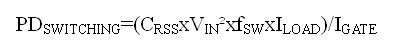 其中CRSS是MOSFET的反向傳輸電容(數(shù)據(jù)資料中的一個(gè)參數(shù)),fSW為開關(guān)頻率,IGATE是MOSFET的柵極驅(qū)動(dòng)器在MOSFET處于臨界導(dǎo)通(VGS位于柵極充電曲線的平坦區(qū)域)時(shí)的吸收/源出電流。