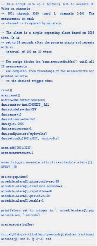 使用分立的控制器,基于腳本的儀器當然可用于常規測試系統。這樣做的詳細步驟可能有所不同,這取決于制造商選擇如何實現腳本。吉時利支持TSP的儀器能輕松地配合單獨的控制器使用。如前面詳細介紹的,指令的名稱和句法有所不同,就像執行查詢獲取狀態和數據的語句。但總的來說,這種改變很小并且任何熟悉儀器編程的人都能很輕松地適應。