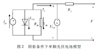 圖2中Iph為光生電流,IVD為流過二極管的電流,VD為Rsh的端電壓,Rsh和Rs為等效的并聯電阻和串聯電阻,V、Is分別為光伏電池元的輸出電壓和電流。根據此等效模型可得到光伏電池的數學模型,并根據數學模型得到光伏電池特性曲線,如下圖3所示。