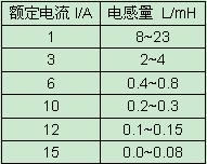 表1 電感量范圍與額定電流的關系