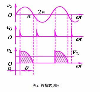 (2)q:導通角。每半個周期晶閘管導通角度??刂平窃酱?,導通角越小,它們的和為定值α+q=p。它改變交流電的平均電壓,其平均電壓是可控的、平滑變化的。