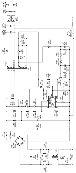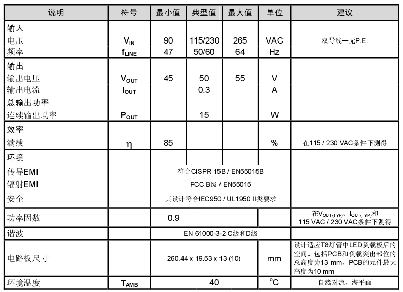 此設(shè)計的主要目標(biāo)是超薄和高效率。這樣有助于使驅(qū)動器板適應(yīng)T8燈管內(nèi)LED負載板后的空間,并將工作時的溫升保持在可接受的范圍以內(nèi)。為此,必須認(rèn)真選擇元件和安裝方法,但這相比于方案的更換更加簡單,因為初級側(cè)調(diào)節(jié)的LinkSwitch-PH設(shè)計所需的元件數(shù)量很少。