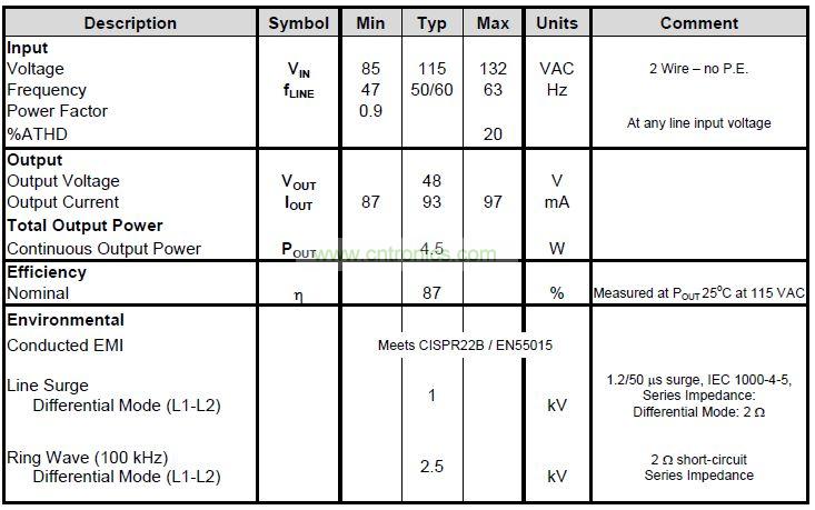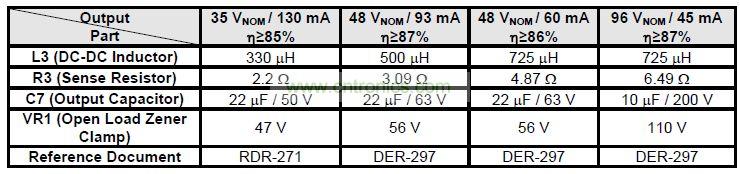 本文介紹采用PI LinkSwitch-PL系列非隔離單級LED驅(qū)動器IC設(shè)計而成的針對B10型LED燈泡設(shè)計的高效率、超緊湊驅(qū)動器——DER-297。它的單一恒流輸出功率為4.5W,可輕松配置從35V到100V的輸出電壓,如下表所示。