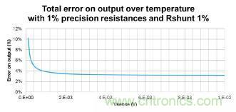 圖3: 總誤差, 假設電阻精度為0.1% Rshunt精度為 1%