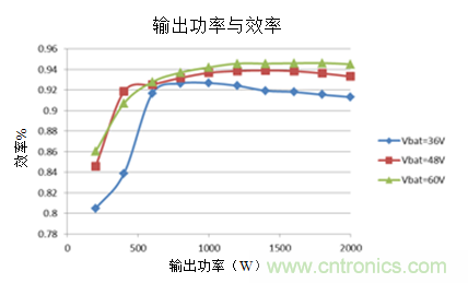 參考設(shè)計在降壓模式(作為充電器)下的峰值效率為94%,在升壓模式(放電期間)為95%,平均效率高于93%。這種高放電效率為電池提供更長的運行時間。在36V至60V的寬輸入電壓范圍內(nèi),使用電流饋電全橋級在放電模式下實現(xiàn)高效率,其優(yōu)化隔離變壓器的設(shè)計,以繞組中的最小化均方根(RMS)電流,同時最小化通過輸入電容器的紋波電流。
