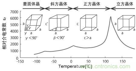 圖2:隨溫度結(jié)晶構(gòu)造及介電率的變化(BaTiO3系)