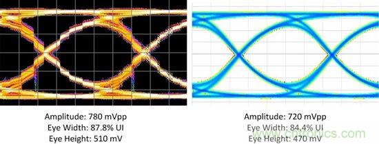 DS125BR820在筆者的系統輸出端打開了眼圖。圖2所示的實例1表明有足夠的余量,看來DS125BR820能補償更多的通道損耗同時使眼圖仍能保持開啟狀態。圖3所示的實例2展示了相反的情況:筆者的通道有太多的損耗,在這些運行條件下筆者很可能會看到誤碼,除非在通道的末端使用接收芯片的均衡功能。