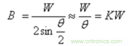 莫爾條紋的間距與柵距W和兩光柵刻線的夾角θ(單位為rad)之間的關系為