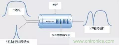 當一束寬光譜光經過光纖光柵時,滿足光纖光柵布拉格條件的波長將產生反射,其余的波長將透過光纖光柵繼續往前傳輸,利用這一特性可制造出許多性能獨特的光纖器件。