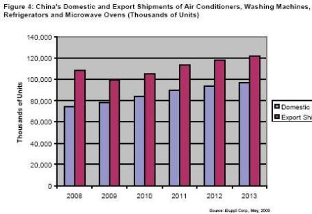 中國的大型國內設備制造商控制著主要家電市場。這些企業正在國內市場推行產品差異化策略,對于出口市場則以成本掛帥。