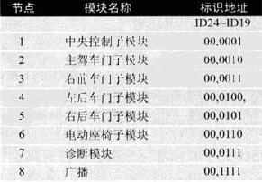 表2車身控制模塊各節點地址分配