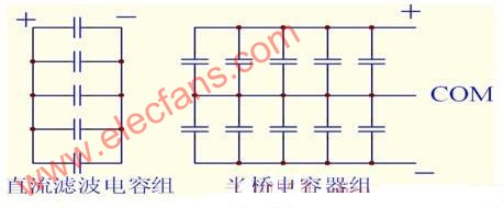 感應(yīng)加熱設(shè)備電路結(jié)構(gòu)分為兩種.從市面上的產(chǎn)品來看,30KW以內(nèi)采用的是半橋.30KW以上采用的是全橋.以半橋30KW機(jī)芯來看,薄膜電容器的使用情況如下: