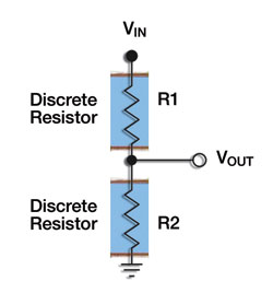 通過選擇單片襯底上的高精度薄膜分壓器,設(shè)計人員可以確保分壓器中的電阻元件具有非常相似的電氣特性,并在溫度和時間變化時實現(xiàn)很好的跟蹤。在公用襯底上的材料和處理過程的相似性確保了分壓器能夠在所有比值和環(huán)境下更為穩(wěn)定,且性能更好。