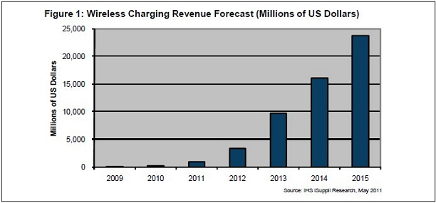 據IHS iSuppli公司的研究,盡管仍有一些因素妨礙大眾市場的接受,但2011年無線充電設備的銷售額將劇增616%。