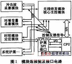 無(wú)線傳感器網(wǎng)絡(luò)是由大量傳感器節(jié)點(diǎn)通過(guò)無(wú)線通信自組織構(gòu)成的網(wǎng)絡(luò),被認(rèn)為是將對(duì)21世紀(jì)產(chǎn)生巨大影響力的技術(shù)之一。在分布式測(cè)試中使用無(wú)線傳感器網(wǎng)絡(luò),不受通信電纜的限制、組態(tài)靈活、重構(gòu)性強(qiáng),可以在較惡劣的測(cè)試環(huán)境中使用。由無(wú)線傳感器網(wǎng)絡(luò)組成的分布式測(cè)試系統(tǒng)已應(yīng)用于水中爆炸測(cè)試系統(tǒng)。在一些分布場(chǎng)測(cè)試系統(tǒng)中,被測(cè)量種類(lèi)繁雜,為完成測(cè)試任務(wù),節(jié)點(diǎn)采用模塊化設(shè)計(jì),SPI接口電路簡(jiǎn)單、傳輸速度快,各模塊通過(guò)SPI總線通信協(xié)同完成測(cè)試任務(wù)。但在實(shí)際開(kāi)發(fā)應(yīng)用中,由于系統(tǒng)要求,使某些模塊與多個(gè)模塊鏈接,且接口工作在不同的模式下,如果完成通信需要功能模塊的SPI接口主從切換,致使通信速度與靈活性降低。CPLD具有可編程性特點(diǎn),可根據(jù)需要擴(kuò)展專用SPI接口電路,提高系統(tǒng)通信速度與靈活性,方便系統(tǒng)擴(kuò)展功能模塊,提高系統(tǒng)整體性能。
