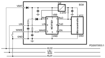 圖2:基于安森美半導體NCV7321的典型LIN電路
