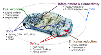 隨著西方汽車市場需求的復蘇以及發(fā)展中經(jīng)濟體車輛數(shù)目的持續(xù)增長使燃料消耗和污染不斷增加,政府和制造商都在積極探索改善燃油經(jīng)濟性以節(jié)約能源、減少排放的途徑,汽車中越來越多的電子功能也使半導體元件在車輛中的比重不斷激增。面對環(huán)保和豐富消費者體驗的雙重挑戰(zhàn),半導體制造商正在利用其技術專長開發(fā)各種符合汽車規(guī)范的解決方案。