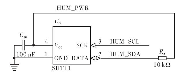 SHT11電源供電要求為2.4~5.5V,電源和時鐘信號均由微處理器提供,數據線管腳三態輸出,因此需要外界一個上拉電阻將信號拉高。