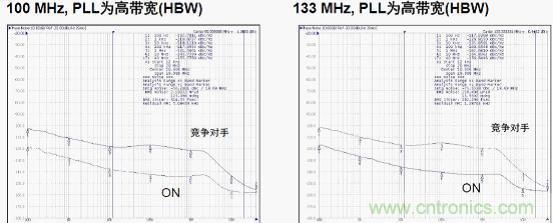 另外,多個PLL分層布置時,用戶可調節帶寬對時鐘樹進行系統優化。使用HBW(高帶寬)擴頻時鐘時用于維持擴頻特性,從而將輸入與輸出相位差減至最?。皇褂肔BW (低帶寬)可濾除PLL帶寬內的時鐘輸入抖動。