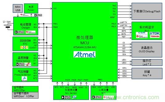 圖示2-大聯大世平基于Atmel ATSAM4L的多功能智能手表功能框圖