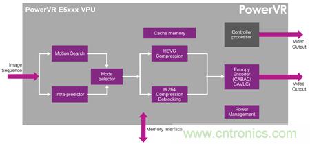 •PowerVR E5505:專為實現4K @ 30fps而設計的高性能編碼器,適用于平板電腦、移動電話、家庭媒體網關與監控攝像頭等產品