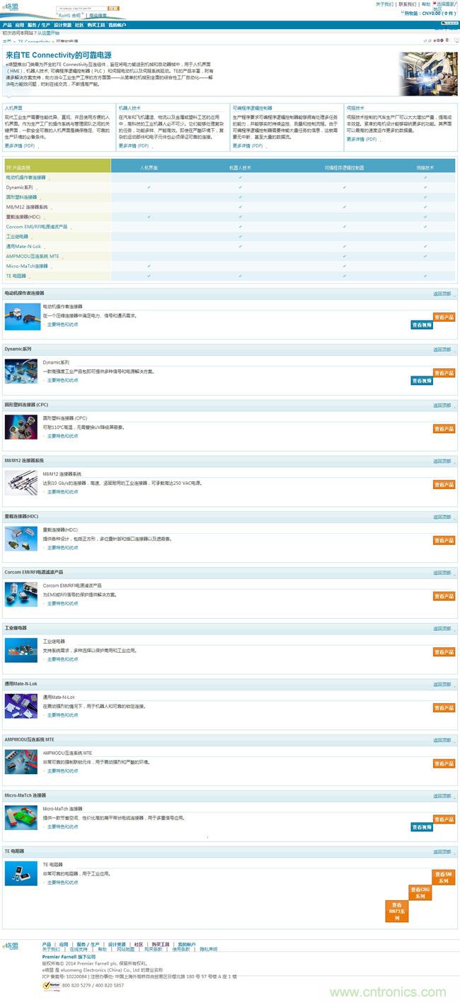 TE Connectivity 亞洲區(qū)渠道銷售副總裁Sean Miller表示:“自動(dòng)化是當(dāng)今工業(yè)生產(chǎn)工序的一個(gè)重要保障。我們很高興能夠借助e絡(luò)盟全新子站的強(qiáng)大增強(qiáng)功能為我們的客戶提供更加優(yōu)質(zhì)的用戶體驗(yàn),使他們能夠更加方便地查看并選購TE廣泛的互連產(chǎn)品。除了能夠更加快速地評(píng)估并選購HMI或PLC設(shè)計(jì)所需的產(chǎn)品,我們的客戶還可享受到e絡(luò)盟提供的一流客戶服務(wù)和技術(shù)支持。”