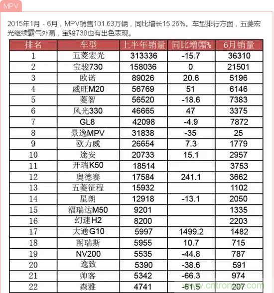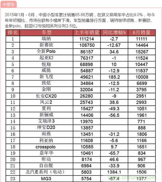 2015年1月-6月,中國乘用車銷量超過千萬輛,達到1009.56萬輛,同比增長4.80%,比上年同期回落6.38個百分點。其中基本型乘用車(轎車)銷售