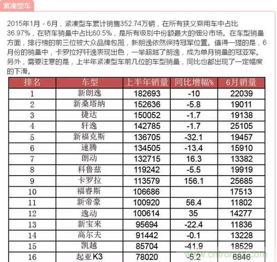根據中國汽車工業協會的數據,2015年上半年380余款車型的銷量按照級別分類如下: