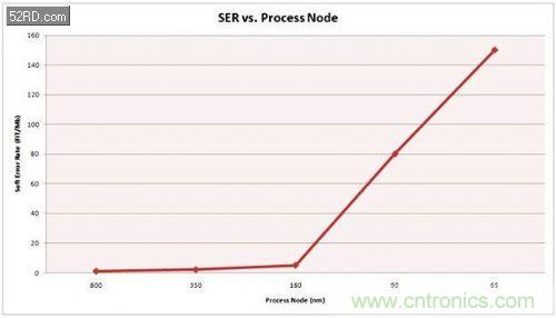 更易出現(xiàn)軟錯誤:工藝節(jié)點從130nm縮小到22nm后,軟錯誤率預(yù)計將增加7倍。