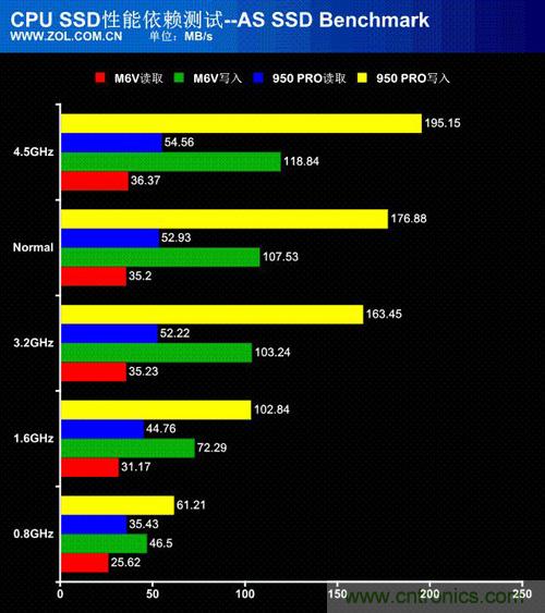 4.5GHz下M6V SSD平均寫入速率
