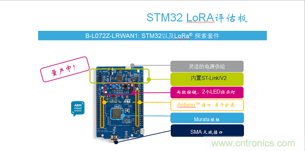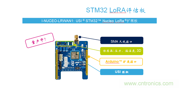 I-NUCEO-LRWAN1是支持STM32 Nucleo或Arduino開發板的擴展板,雖未通過LoRa1認證,但只要插到主板上,即可立即著手開發全功能的LoRa/FSK/OOK(頻移鍵控/二進制開關鍵控)連接應用。