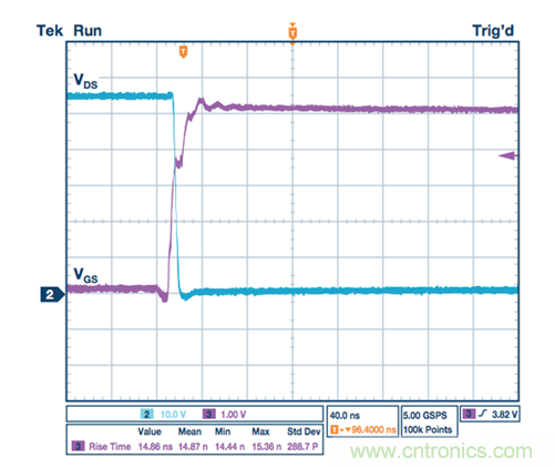 圖2. 無柵極驅(qū)動器的MOSFET導(dǎo)通轉(zhuǎn)換
