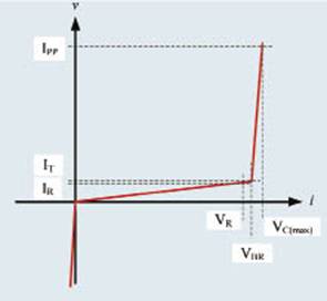 圖2 TVS線性化I-V特性曲線(單向TVS,陰極端子定義為陽性)
