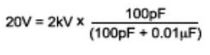 對于一個給定的去耦電容,ESD測試中初始電壓的變化遵循電荷守恒原理。例如,使用一個0.01μF去耦電容,2kV HBM測試電壓可以達到20V: