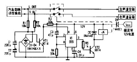 改變R4、C3的參數,可調整揚聲器保護電路開機延遲時間的長短,一般設為5 s(秒)即可。