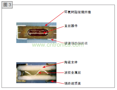 圖3為直絲設計的2410SFV保險絲和一般波紋絲設計的對比。直絲器件在空氣中熔斷性能更一致,具有更低電阻和良好的浪涌抵