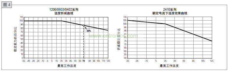 保險絲是一種溫度敏感器件。因此,工作溫度對保險絲性能和壽命具有一定影響。保險絲選型時應考慮工作環境溫度。圖4給
