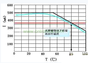 利用無溫度依賴性的電源運行LED存在弊端:在高溫區(qū)域內(nèi),LED則超出規(guī)格范圍運行。此外,當處于低溫區(qū)域時,照明源就由明顯低于最大容許電流(參見圖1紅色曲線)的電流供電。如圖1的綠色曲線所示,通過LED驅動電路中的正溫度系數(shù)熱敏電阻(簡稱PTC熱敏電阻)來控制LED電流是一個重大改進。這至少可以帶來下列好處: