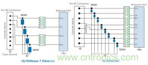 圖4:使用 SESD 保護(hù)以太網(wǎng)口