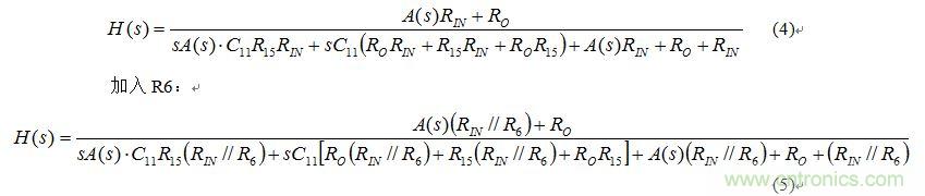 從系統函數來看仍然不能得到結果,因為不知道A(s),Rin,Ro的值,無法得到R6的加入為什么能將原來的極點數減少兩個。