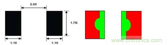 建議將鋼網開口間距加大并適當外擴另一側尺寸0.2~0.3mm,鋼網厚度不得小于0.1mm.