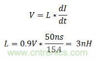 用電子負(fù)載測試電源的瞬態(tài)響應(yīng)很常見。對許多系統(tǒng)軌(如服務(wù)器的3.3V或5V總線)而言,電子負(fù)載很容易配置為在2-10A/us的范圍內(nèi)汲入電流的模式。但是,內(nèi)核電壓可能需要轉(zhuǎn)換速率比這些水平高兩個數(shù)量級。高轉(zhuǎn)換速率測試中的一個主要限制因素是負(fù)載路徑中的寄生電感。要以300A/us的速率為0.9V輸出轉(zhuǎn)換15A的電流,公式1計算出的最高電感是3nH。作為參考,成圈狀通過電流探頭的16級導(dǎo)線的1英寸片可將20nH的電感添加到負(fù)載路徑中。很明顯,需要另一種電流汲入方法。
