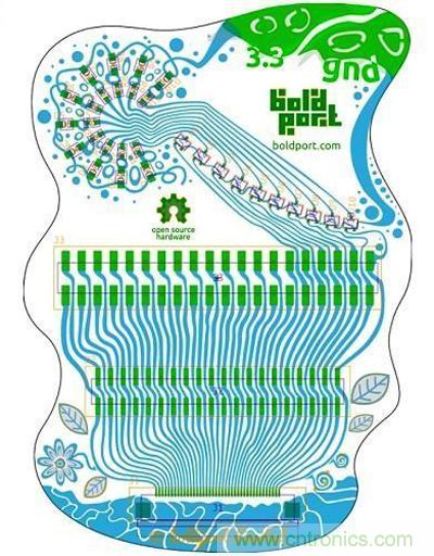 以下是許多有如藝術品的電路板設計,對于這些創作者,筆者忍不住要贊賞他們的努力成果;當你在做電路板繞線設計時,你可以維持傳統做法使用枯燥簡潔的線條,但加入一些變化與美學的繞線形式在功能上并不會打折扣;看看這些作品,難道你不覺得它們看起來是如此生機勃勃,比純粹講究實用主義的四方形綠色塑料板更有“人性”?