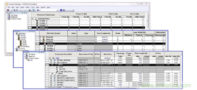 當今的關鍵高速設計異常復雜,如果沒有有效的手段來管理約束規則,則對走線、拓撲和信號延遲等方面的設計、約束和管理將會變得異常困難。為了在第一次迭代中就構建出成功的產品,必須在設計流程的早期設置約束規則,以便設計達到要求的目標。良好的約束規則管理可防止您使用價格高昂或無法采購到的元件,并且最終確保電路板符合性能和制造要求。