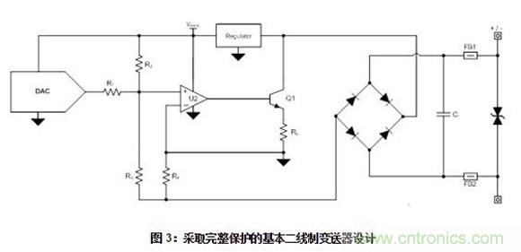 【導讀】在熟知變送器設計和運行的前提下,本文將討論如何設計保護這些系統的電路。文章中的圖片為基本的二線制變送器設計供參考。