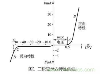 提到二極管,大家最熟悉的就是二極管的單向?qū)щ娦裕从撤睬€上如圖1所示。當(dāng)正向偏壓U=0.5V(硅管)時(shí),二極管開(kāi)始導(dǎo)通,電流越大電壓越大,具有很低阻抗;當(dāng)加反向偏壓時(shí)二極管不導(dǎo)通,在一定范圍內(nèi)有很小的漏電流,具有很大阻抗。其這個(gè)單向?qū)щ娦裕财鸬搅碎_(kāi)關(guān)的作用,所以在整流和開(kāi)關(guān)方面都有廣泛的應(yīng)用。