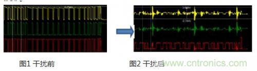 可是到了電動汽車年代,逆變器、電動機、充電機等大功率設(shè)備對CAN的影響足以中斷通訊,或者損壞CAN節(jié)點,如圖1圖2所示,就是被逆變器干擾的CAN波形。