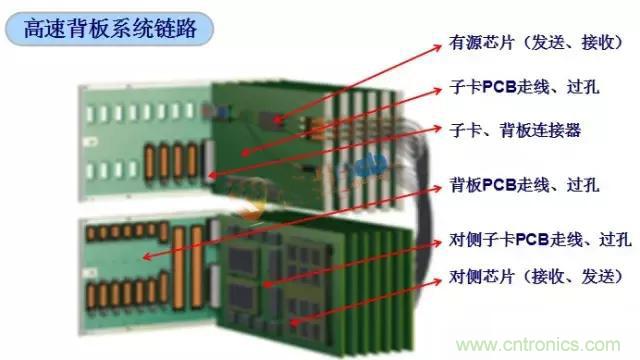 高速背板的設(shè)計(jì)除了關(guān)注背板PCBA設(shè)計(jì)要素以外,需要關(guān)注整個(gè)系統(tǒng)高速信號(hào)互連鏈路的設(shè)計(jì),典型的高速信號(hào)鏈路參考下圖: