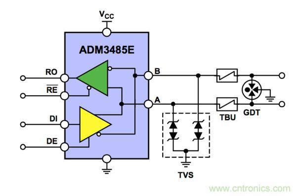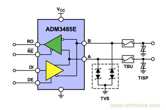 【導(dǎo)讀】在實(shí)際的工業(yè)、電力、自動(dòng)化及儀器儀表應(yīng)用中,RS-485總線標(biāo)準(zhǔn)是使用最廣泛的物理層總線設(shè)計(jì)標(biāo)準(zhǔn)之一,由于其會(huì)在惡劣電磁環(huán)境下工作,為了確保這些數(shù)據(jù)端口能夠在最終安裝環(huán)境中正常工作,它們必須符合相關(guān)的電磁兼容性(EMC)法規(guī)。在本文中,世健公司結(jié)合優(yōu)勢(shì)的代理線ADI( RS-485芯片)、Bourns(在端口EMC防護(hù)方面的器件),從原理分析到實(shí)測(cè)來為大家?guī)碓敿?xì)的RS485的端口防護(hù)分析。